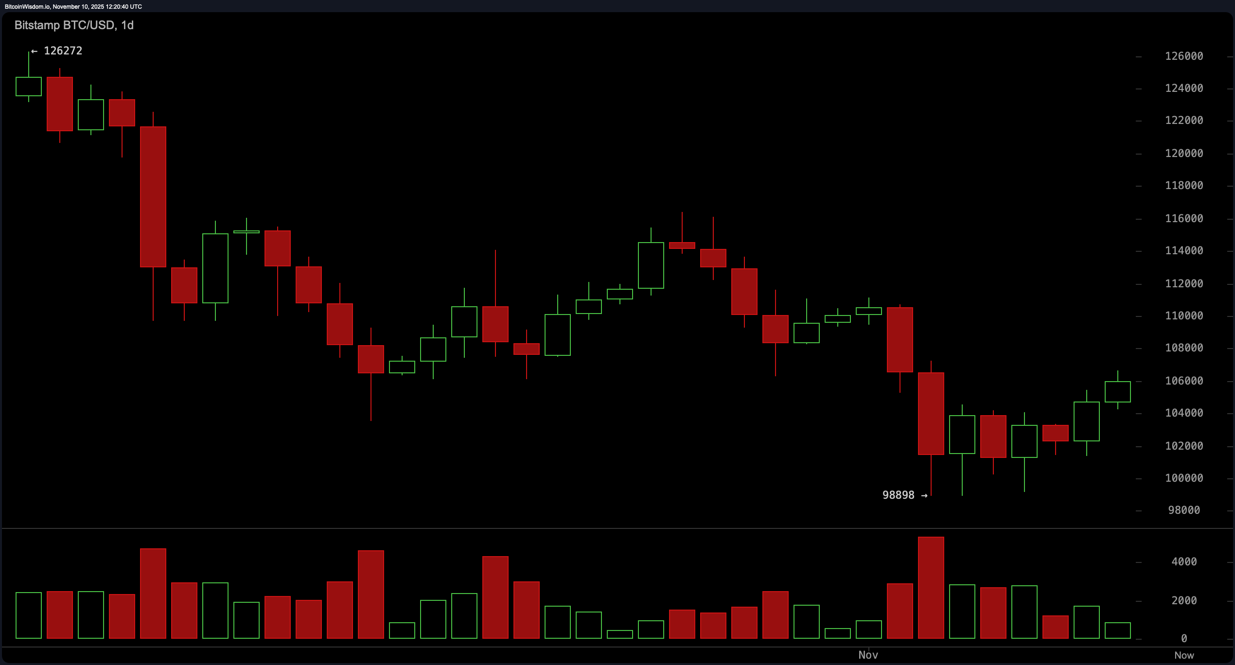 Bitcoin ha fatto il suo ingresso il 10 novembre con un’aria sicura di sé, registrando $105,950 e mostrando una capitalizzazione di mercato di $2.11 trilioni. Con un volume di scambi giornaliero di $70.67 miliardi e un range di prezzo intraday che ha oscillato tra $102,061 e $106,623, i grafici hanno offerto un’ampia gamma di segnali su tutti i timeframe.