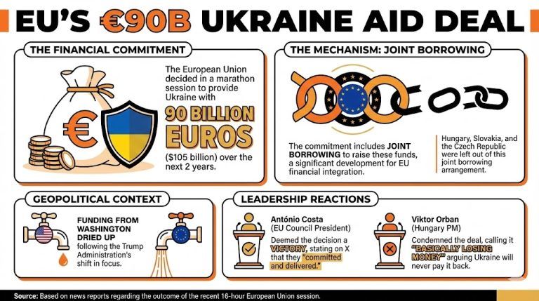 16時間に及ぶマラソン会議の末、欧州連合はロシアとの継続的な紛争におけるウクライナの防衛支援のために、向こう2年間で900億ユーロ(1,050億ドル)を提供することを決定しました。この取り組みには、共同借入が含まれており、ハンガリー、スロバキア、チェコ共和国は除外されます。