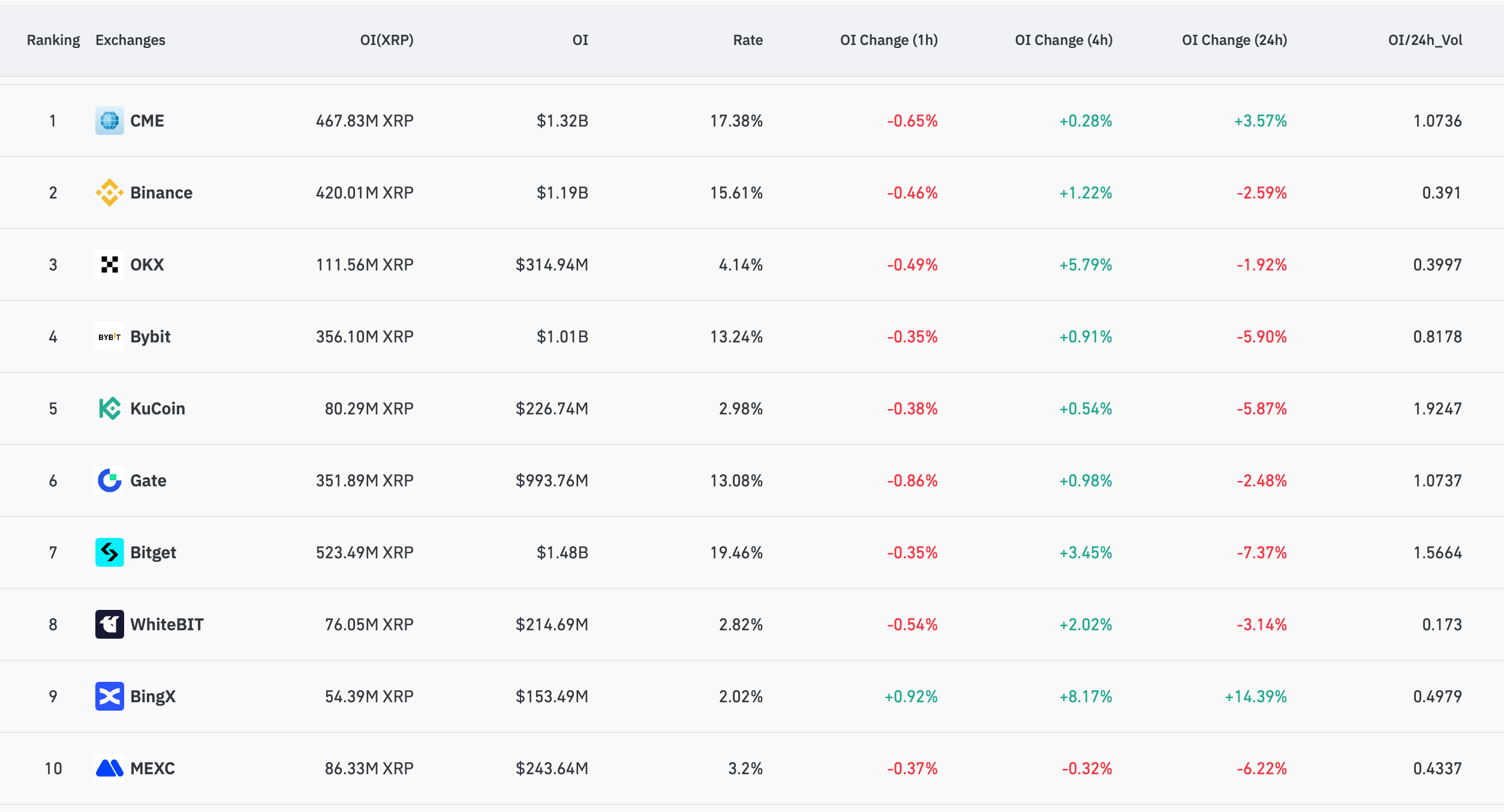 デリバティブがより大きなサブプロットを書きました。オープンインタレスト(OI)は週末にかけて上昇し、トレーダーがより大きな動きに備えてリロードしていることを示しています。オプションのトレーダーには今やサークルをつける日付があります:CMEグループはXRP先物のオプションを10月13日から開始する予定で、公認審査中です。これにより主要レベル周辺でのヘッジ、スキュー、週末ギャップ管理が強化される可能性があります。