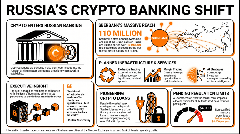 - Sberbank readies crypto trading for its 110M clients, awaiting upcoming Bank of Russia regulations next.