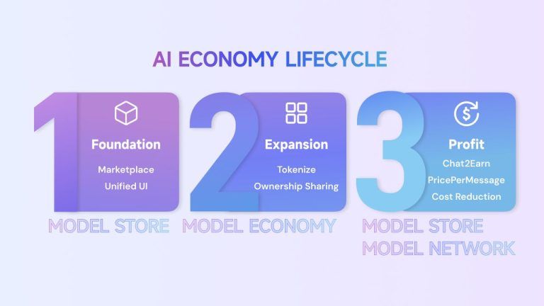 The Model Economy allows AI creators to tokenize their products, facilitating rapid fundraising and public investment to secure future development and build an engaged community. Users, on the other hand, can gain ownership rights and revenue share by owning underlying tokens.