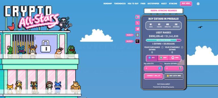 Crypto All-Stars is approaching the $1 million mark in its presale phase, with STARS tokens priced at just $0.0014191 each.