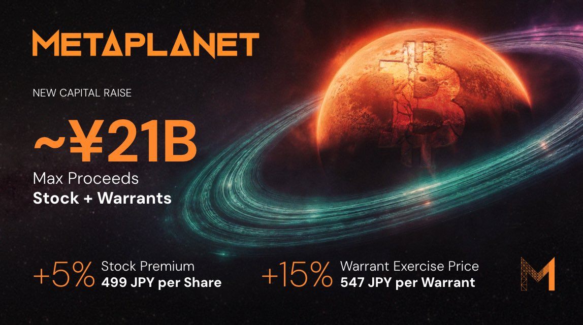 Tokyo-listed Metaplanet has wrapped up a new equity and warrant issuance that may bring in as much as $137 million, capital it plans to deploy primarily toward expanding its bitcoin treasury.