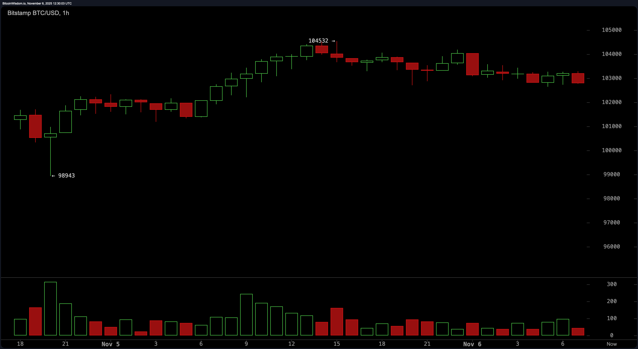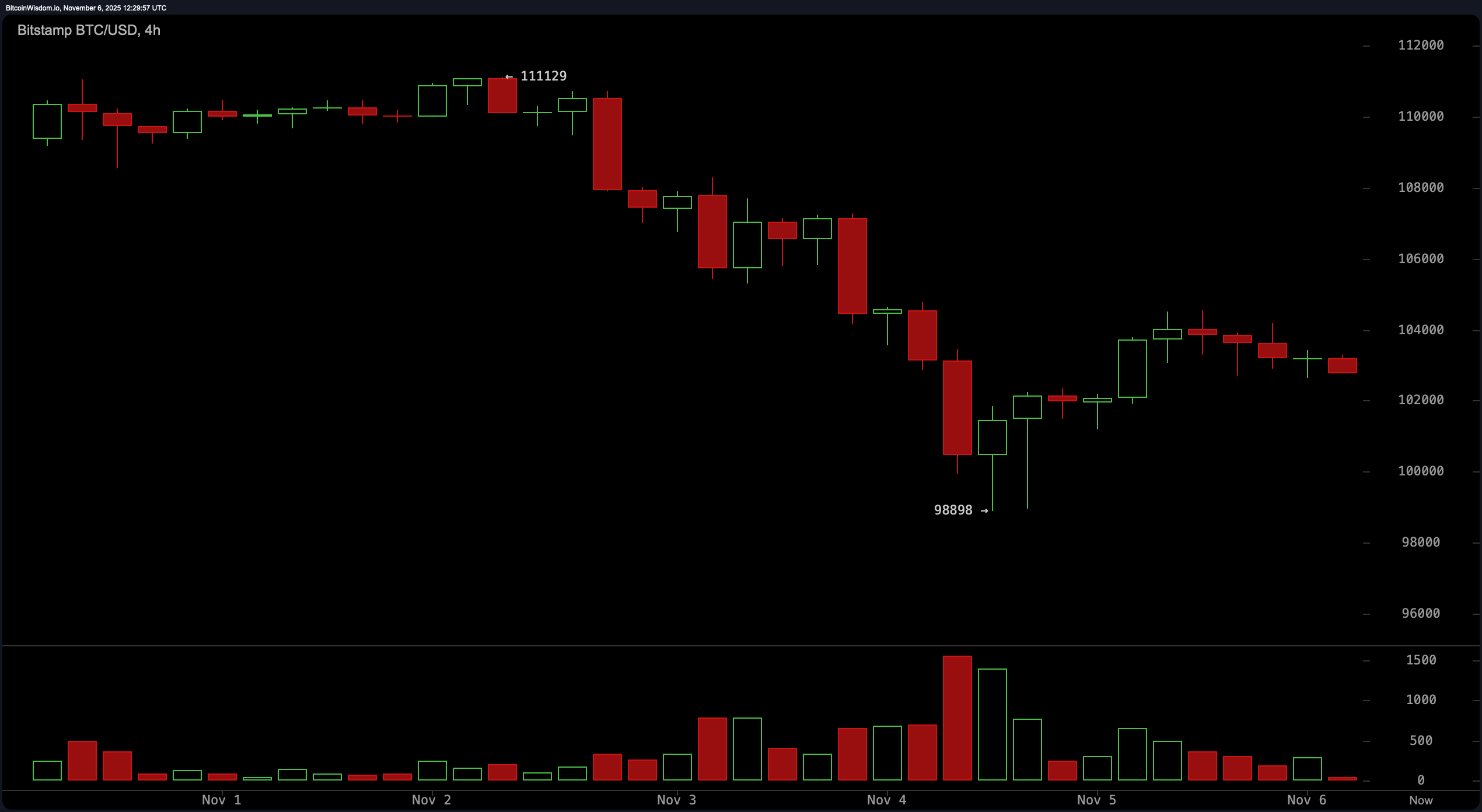 Bitcoin berdagang sekitar $102,848 pada 6 Nov. 2025. - Apakah tahap sokongan semasa untuk bitcoin?