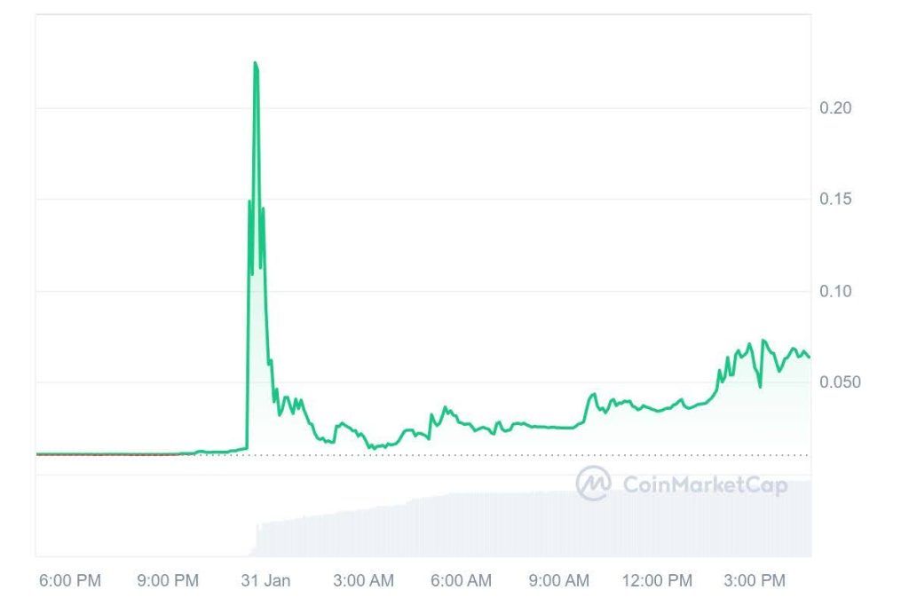 Musk It, a meme coin launched on Dec 12, saw a dramatic 2,200% surge that took it from $0.01 all the way to $0.22 before retracing back to the $0.064 level. Data also shows an 8,642% spike in 24-hour trading volume.