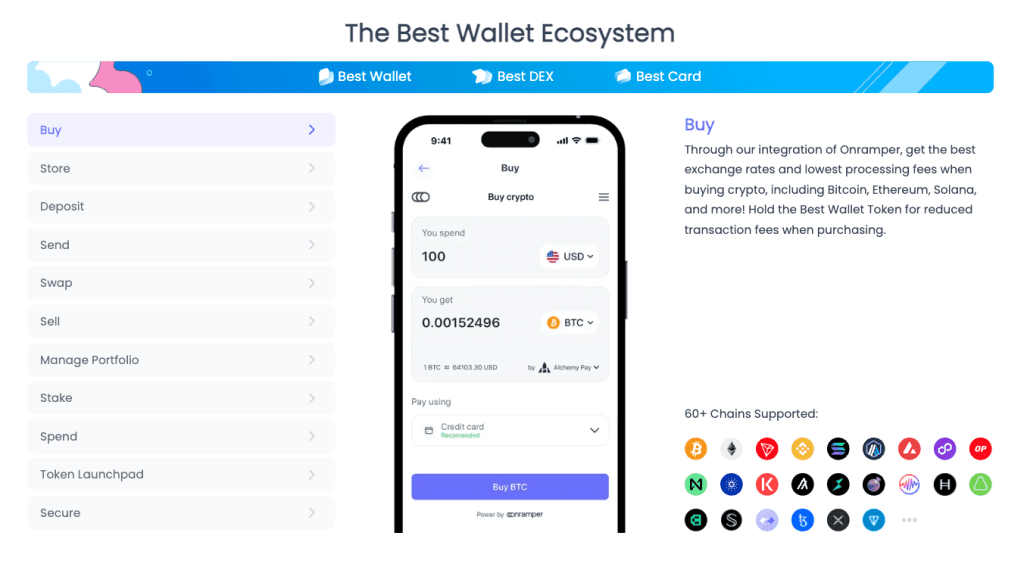 En av Best Wallets viktigste salgsargumenter er dens integrasjon med 60+ blockchains og 200+ DEXs innen en enkel app.