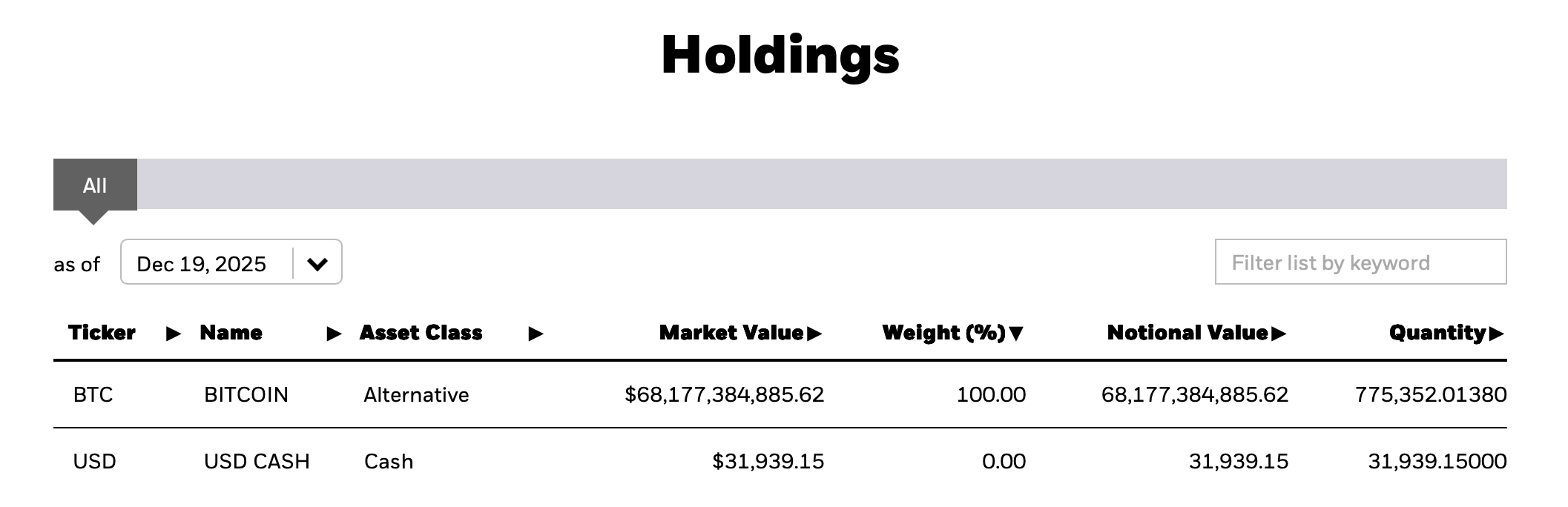 Fra og med 19. desember 2025, hadde IBIT 775.352,01 BTC i forvaring.