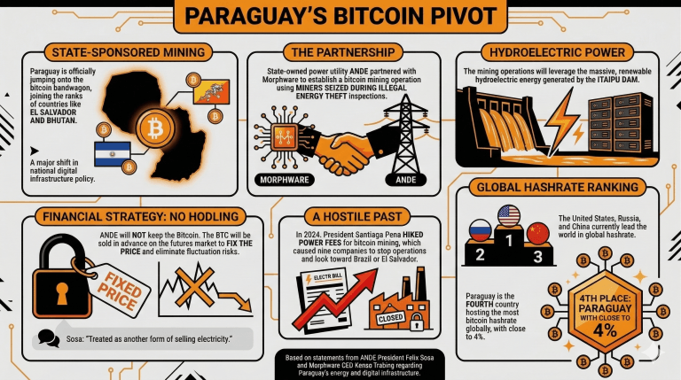 Morphware, which already operates in Paraguay, leveraging the hydroelectric energy of the Itaupu dam, stated that the signing of a memorandum of understanding would allow it to “explore the role of Bitcoin mining as a national-level opportunity within Paraguay’s broader energy and digital infrastructure landscape.”