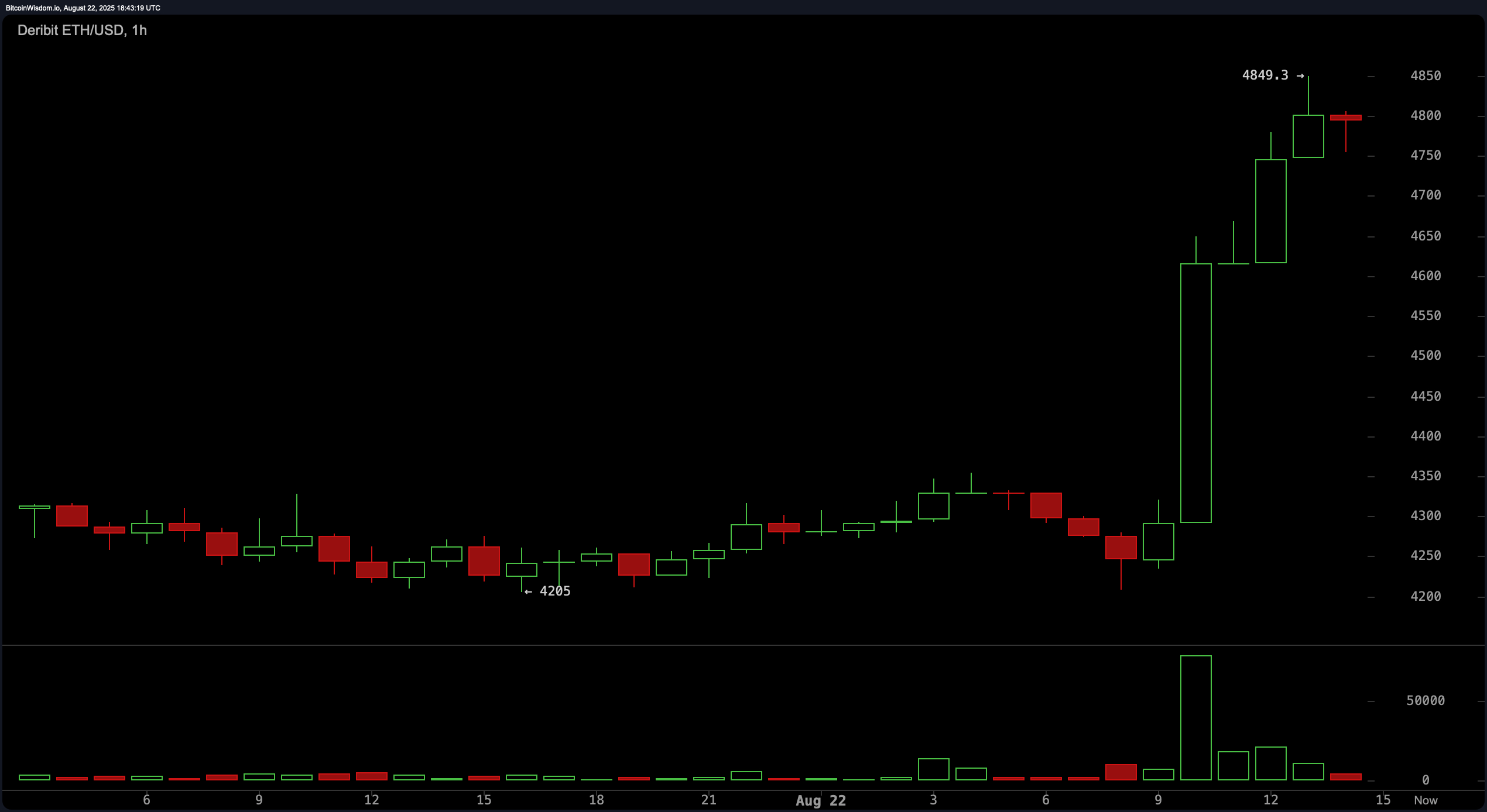 Ethereum skradło uwagę wzrostem o 14% do 4 849 USD na Deribit, zbliżając się do swojego rekordowego poziomu z 2021 roku wynoszącego 4 874 USD. Akcje również dołączyły do tej fety, z Dow, S&P 500 i Nasdaq, które zyskiwały na wiadomościach. Wolumeny obrotów gwałtownie wzrosły, sygnalizując odnowiony apetyt na aktywa wysokiego ryzyka, gdy inwestorzy oczekują łatwiejszych warunków pożyczkowych w przyszłości.