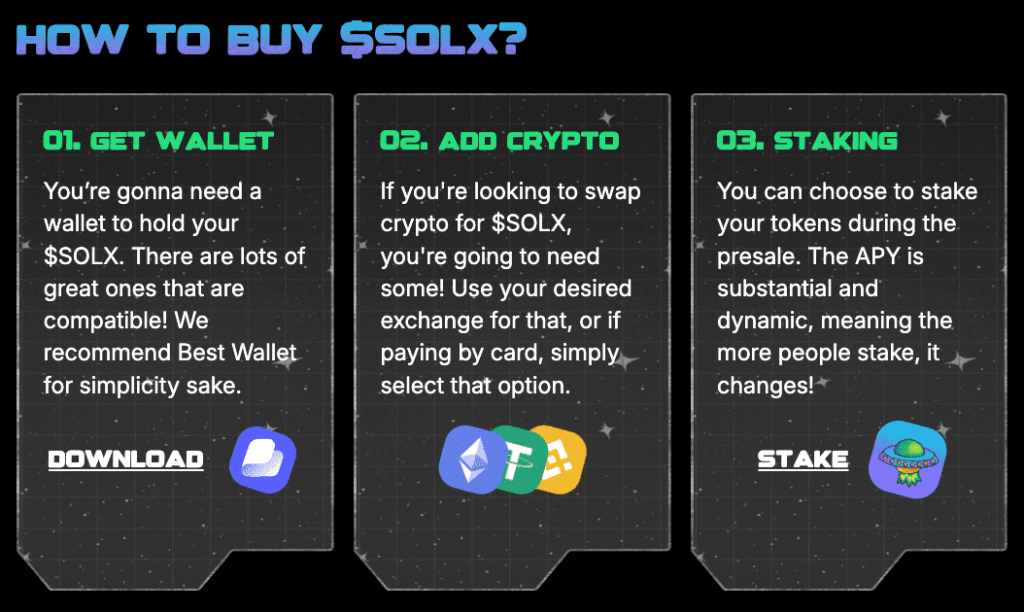 Aqueles que compram durante a pré-venda também podem imediatamente apostar seus tokens SOLX comprados.