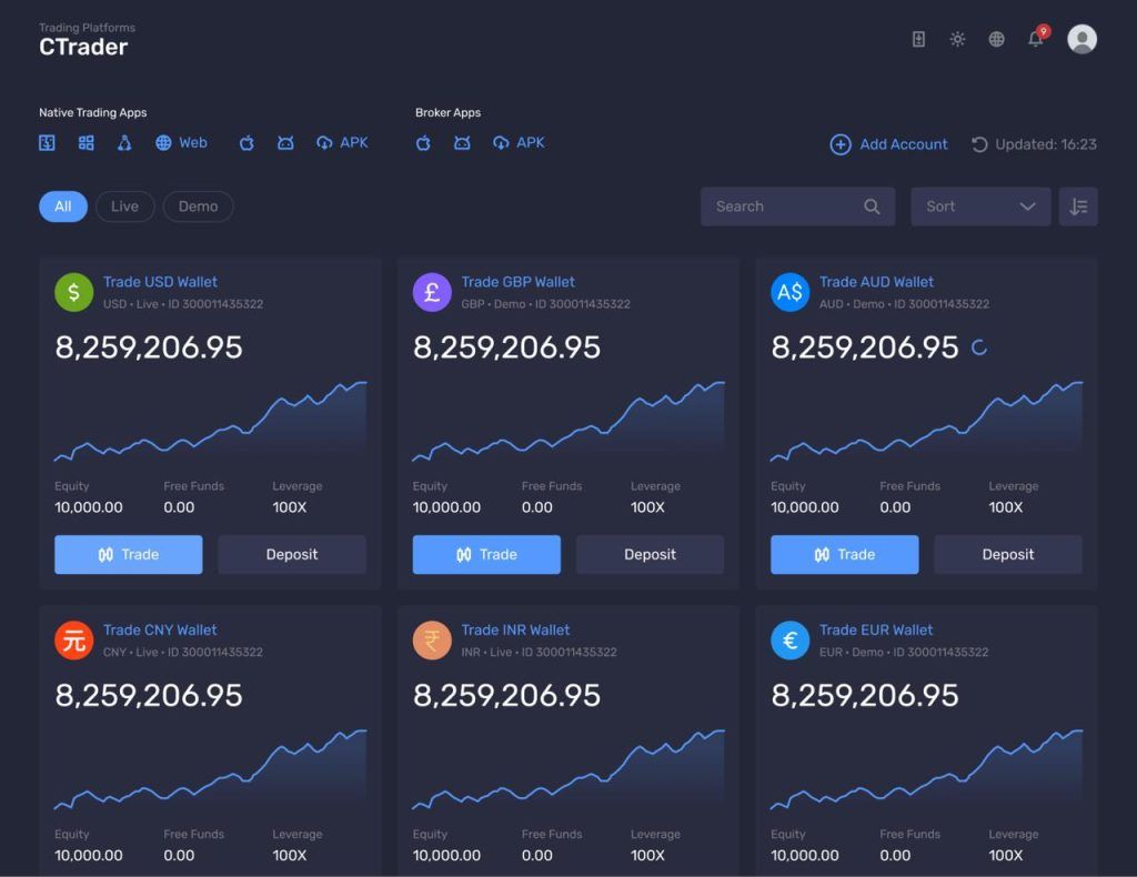 Traders que gerenciam múltiplas contas agora podem alternar entre elas instantaneamente com o sistema de gerenciamento de contas recém-melhorado. Em vez de fazer login e logout de diferentes contas, os usuários podem alternar entre elas em apenas alguns cliques, aumentando a conveniência e economizando tempo.