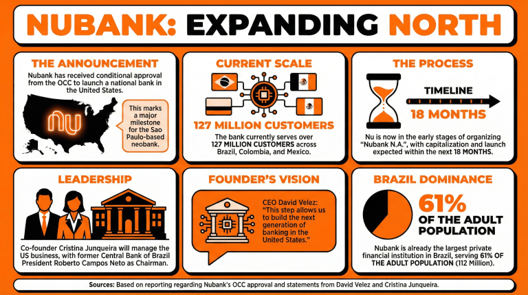 A empresa está trabalhando para atender aos requisitos do OCC para capitalizar e lançar o Nubank N.A. nos próximos 18 meses. - Quem liderará a nova empreitada bancária do Nubank nos EUA?