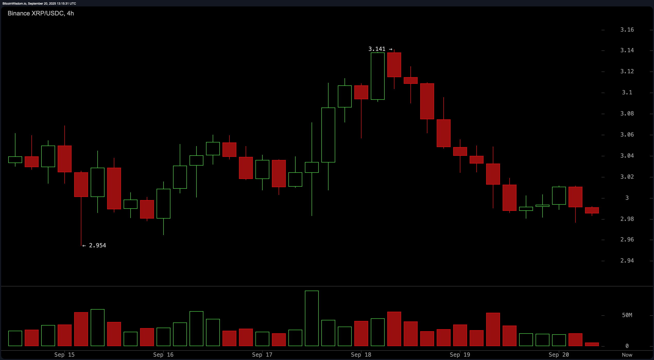 XRP está oscilando em torno de $2,98 a $2,99 em 20 de setembro de 2025, com uma capitalização de mercado de $178 bilhões e um volume de negociação de 24 horas de $3,72 bilhões. A ação de preço intradiária permaneceu estreitamente limitada entre $2,98 e $3,04, destacando um dia de consolidação em meio a sinais técnicos mistos em diferentes prazos.