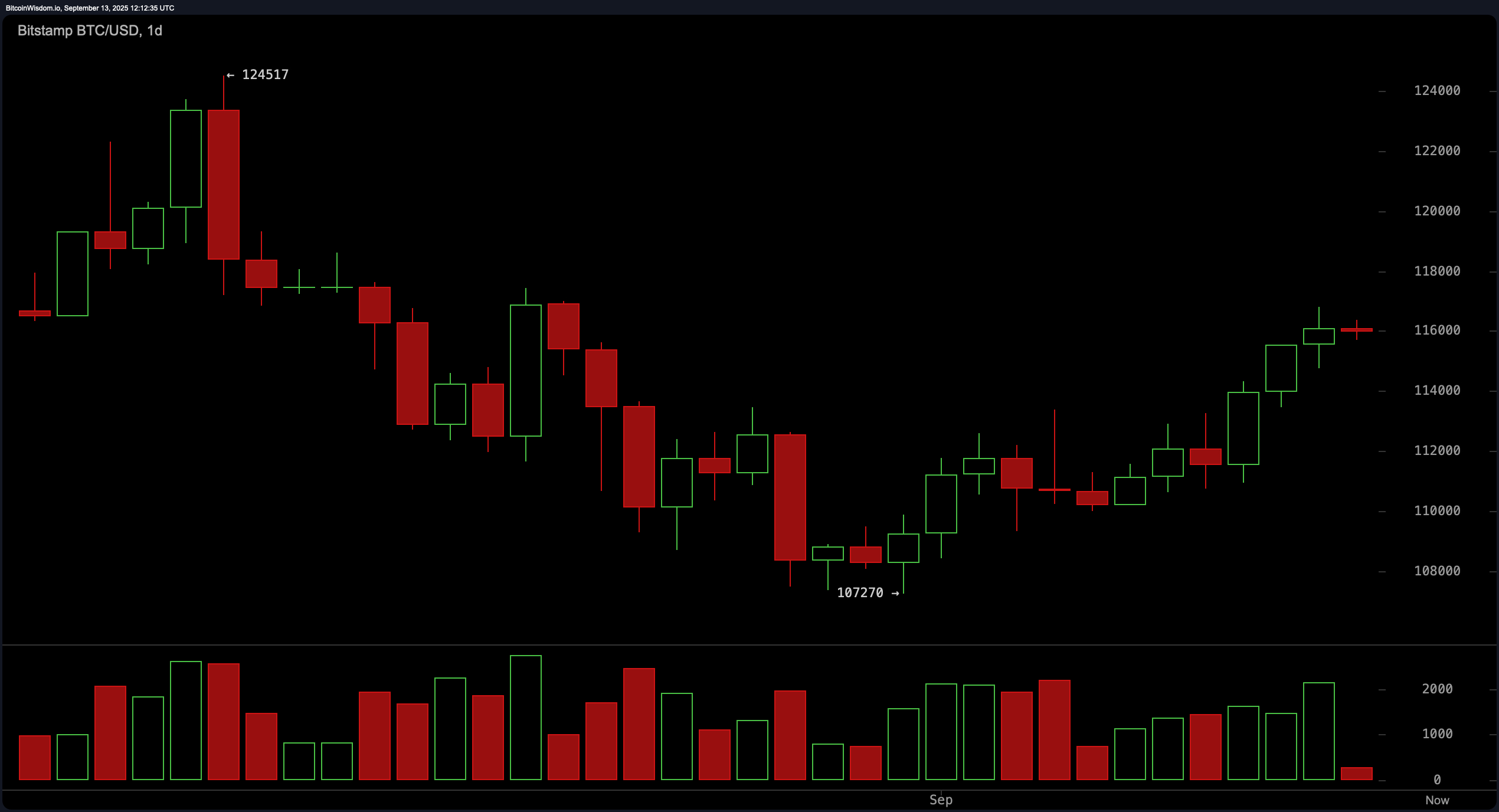Bitcoin a tranzacționat la 115.975 USD pe 13 septembrie 2025, cu o capitalizare de piață de 2,31 trilioane USD și un volum de tranzacționare de 24 de ore de 43,07 miliarde USD. Prețul criptomonedei a fluctuat intraday între 114.838 USD și 116.705 USD, continuând să își consolideze câștigurile recente.