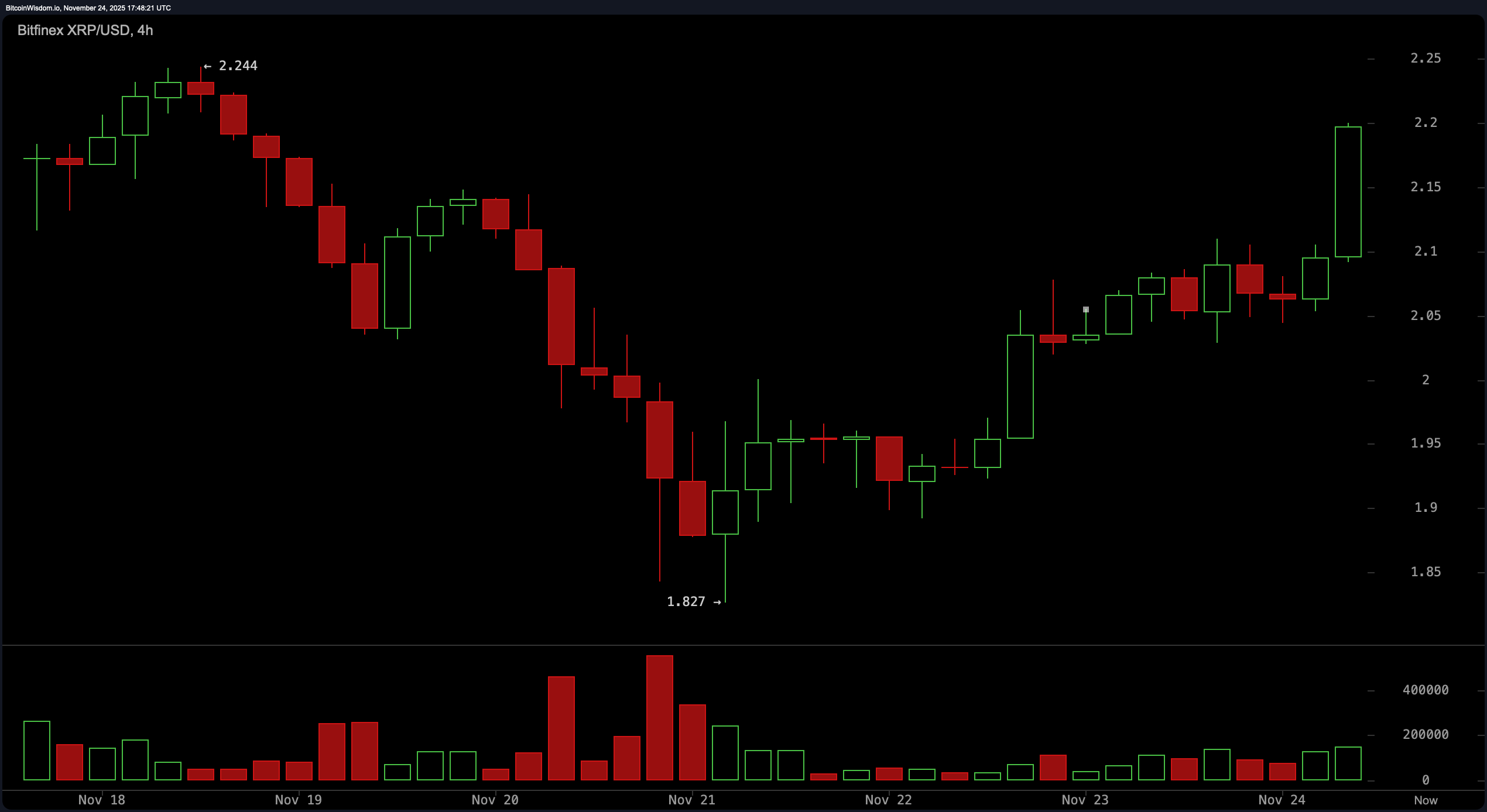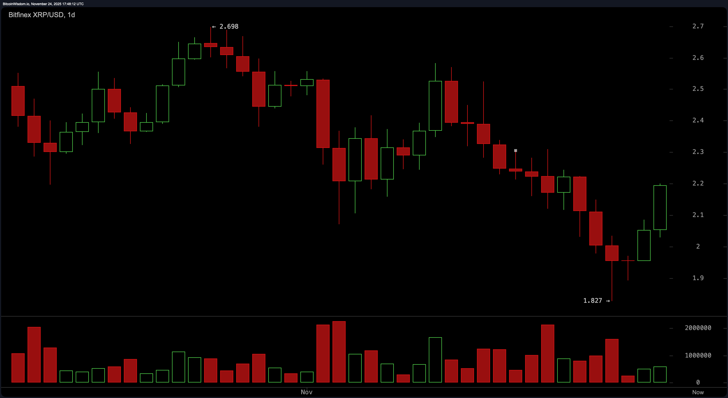 Graficul zilnic al XRP semnalează un posibil sfârșit al declinului său de la $2.70 la $1.83, urmat de o lumânare bullish engulfing clasică care aproape că a strigat, „Revers în pregătire!” Această mișcare a fost susținută de un volum robust, sugerând un interes instituțional greu de ignorat.