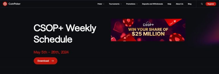Платформа для игры в покер на блокчейне CoinPoker запустила самый большой криптопокерный турнир года 5 мая – CSOP Plus (CSOP+).
