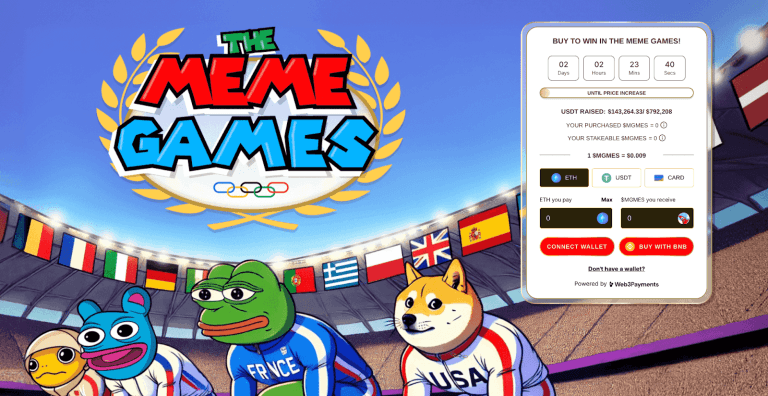 Олимпийская тематика криптовалюты The Meme Games приближается к $150К в первую неделю предпродажи
