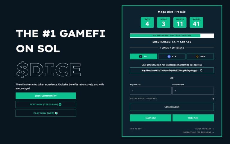 The presale for its native Mega Dice Token (DICE) has now passed $1.7 million – with many early backers believing it could be the next big thing in GambleFi.