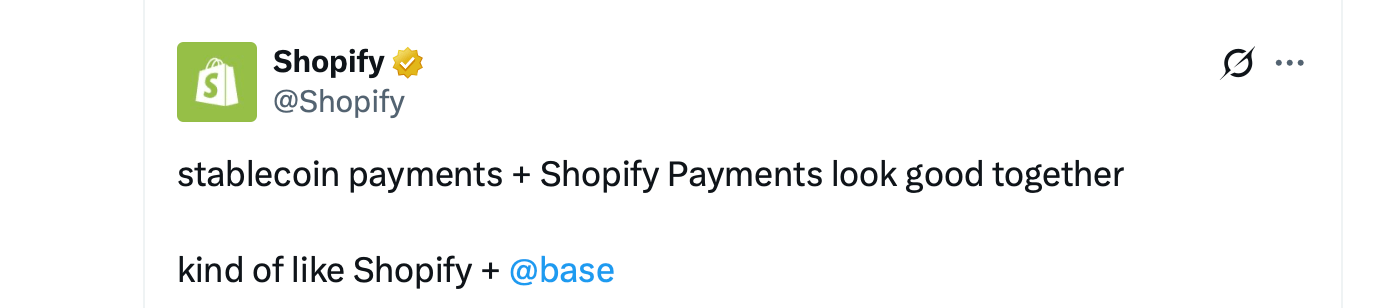 Інтеграція, доступна зараз у ранньому доступі, дозволяє продавцям по всьому світу приймати платежі USDC від клієнтів за допомогою блокчейн-мережі Base. Клієнти можуть сплачувати за допомогою гаманців, які підтримують USDC, під час оформлення замовлення, включаючи гостеве оформлення та Shop Pay. У блозі Shopify зазначено, що для продавців, які використовують Shopify Payments, не потрібно нових інтеграцій або шлюзів.