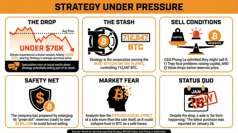 Strategy đang bị chú ý sau khi giá bitcoin giảm xuống dưới 76K đô la, trùng hợp với giá mua trung bình được báo cáo bởi Chủ tịch Điều hành Michael Saylor. -