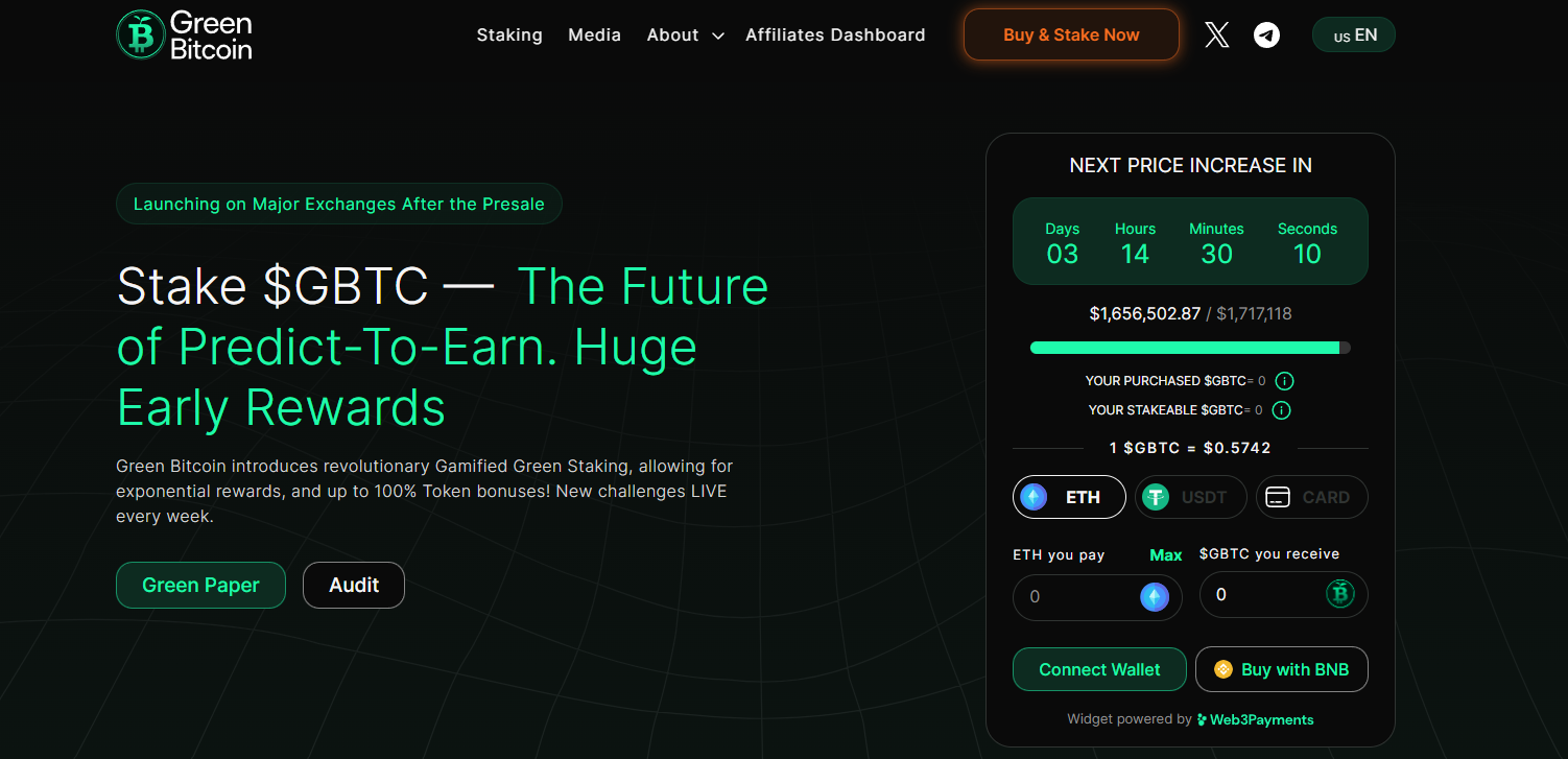Green Bitcoin, with its innovative approach to staking and commitment to eco-friendliness, has captured the attention of the crypto community during its presale phase. By offering a fusion of Bitcoin’s legacy and Ethereum’s sustainability-focused blockchain, Green Bitcoin aims to provide exponential rewards and potential token bonuses of up to 100%. With an impressive APY of 330% and engaging features like weekly prediction challenges, Green Bitcoin presents an intriguing proposition for investors seeking both profitability and environmental consciousness.