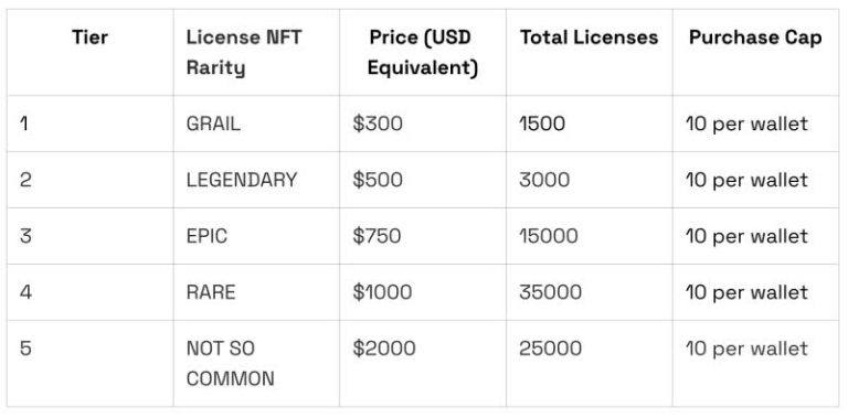 *最终层级结构和总供应量待宣布 **USD 相当于发布时 $4500 ETH 价格 战略合作伙伴提前访问