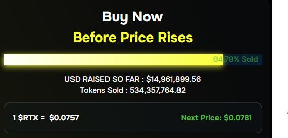 预售投资者已向RTX ICO注入近1500万美元,鲸鱼们纷纷购买以折扣价获取这颗预售瑰宝,累计购买了超过5.35亿个代币。